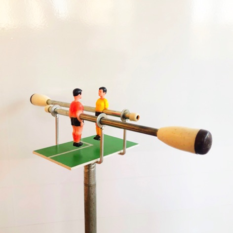 Ik duw en trek aan de vormen, speel met de aankleding, zet ze kappen en koppen op.