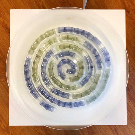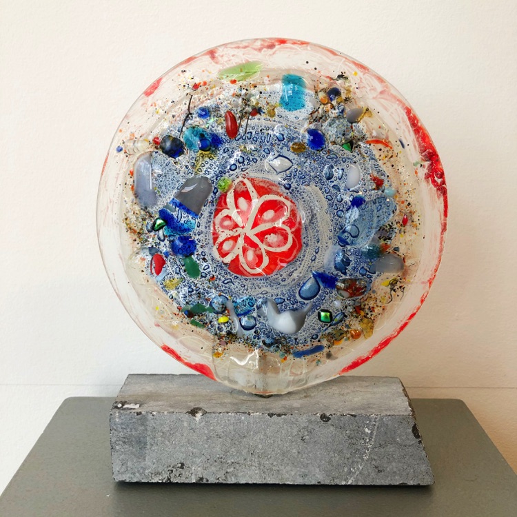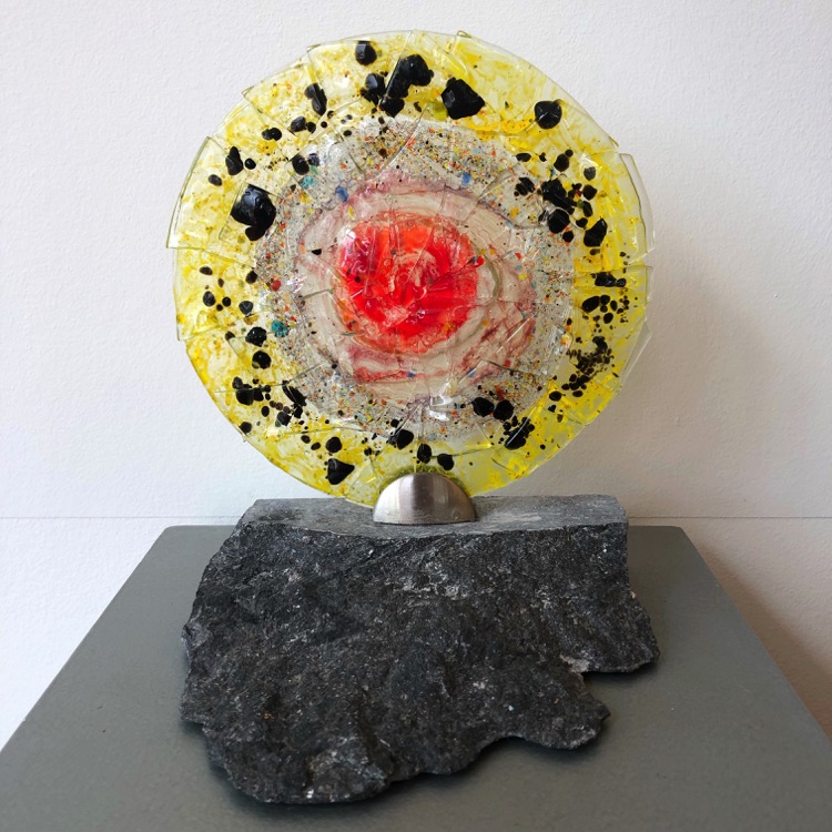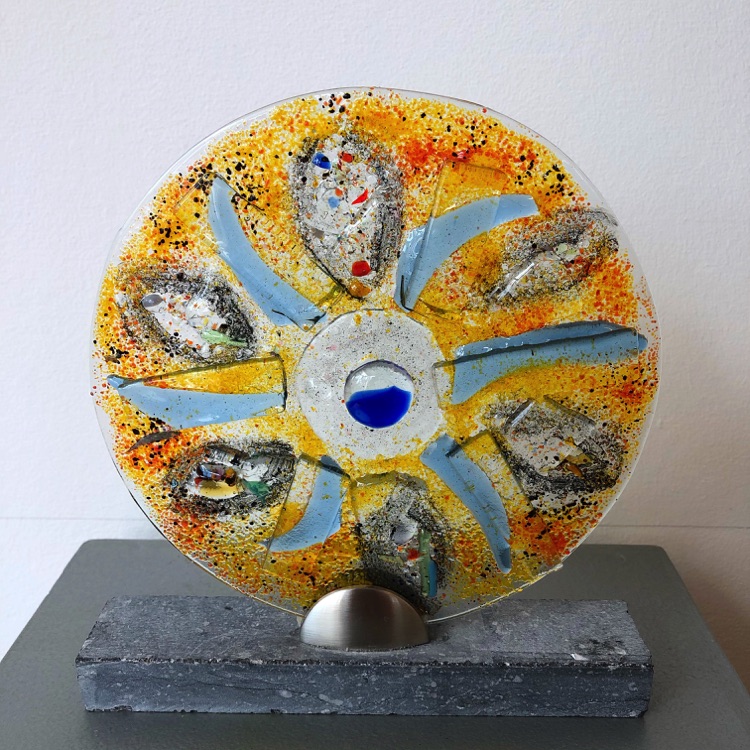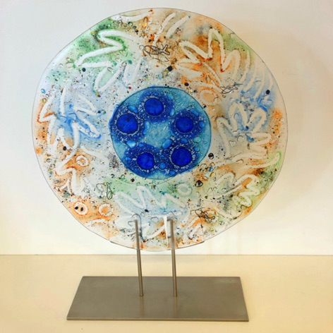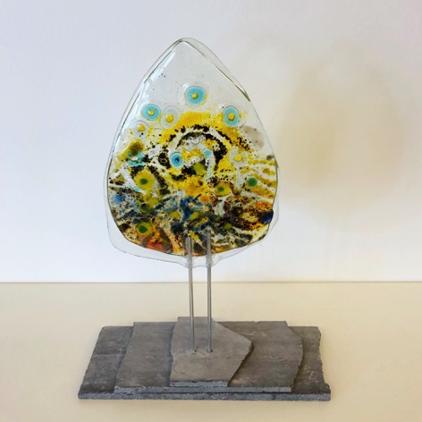 Ineke Smienk woont en werkt in Harmelen waar zij sinds 1999 haar eigen Atelier Levend Glas heeft. Ze begon met het maken van traditonele glas-in-loodramen en panelen, maar al snel nam de fantasie de overhand en werd de techniek van het glazenieren gebruikt voor het vervaardigen van kunstzinnige objecten. Later kwamen daar de pentekeningen en de glasfusie bij. Glasfusie is een techniek waar bij glas op hoge temperatuur in een speciale glasoven wordt versmolten. Deze verschillende technieken lopen vaak in elkaar over.